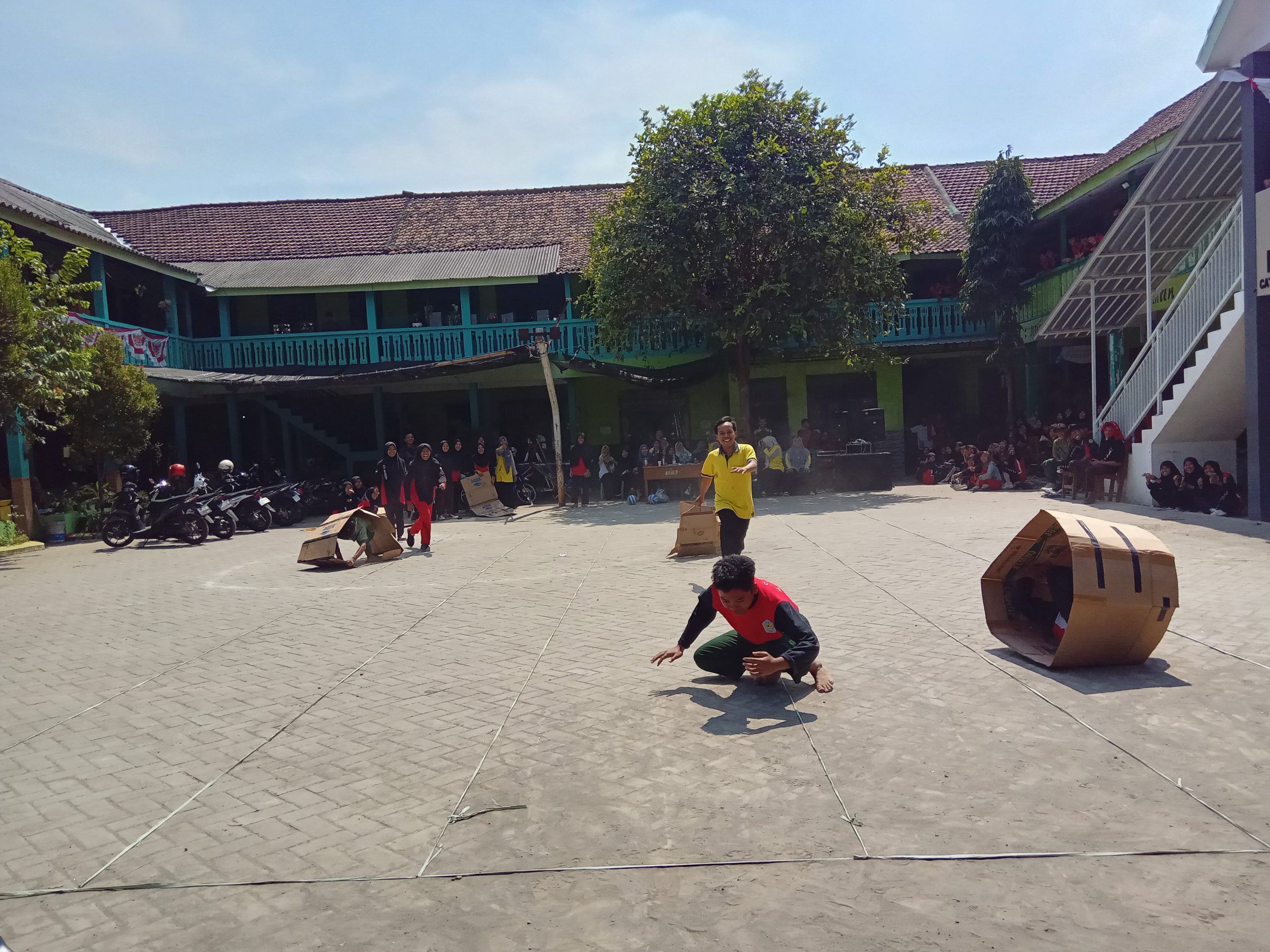 Kemudian, kita akan melanjutkan dengan lari sujud. Ya, kita bakal berlari di dalam kardus, dan pastinya ini bakal jadi tantangan yang seru dan lucu!